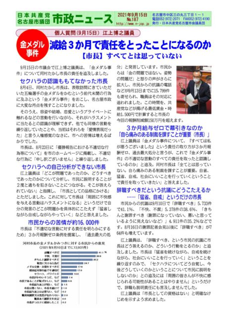 << 減税日本ナゴヤ佐藤ゆうこ議員の議会運営委員会理事問責決議可決