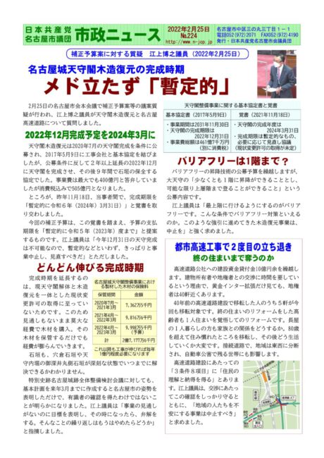 << 名古屋市議会2月予算議会で、2月25日(金)午前10時個人質疑、3月4日(金)午後2時から(予定)日本共産党市議団代表して質問します