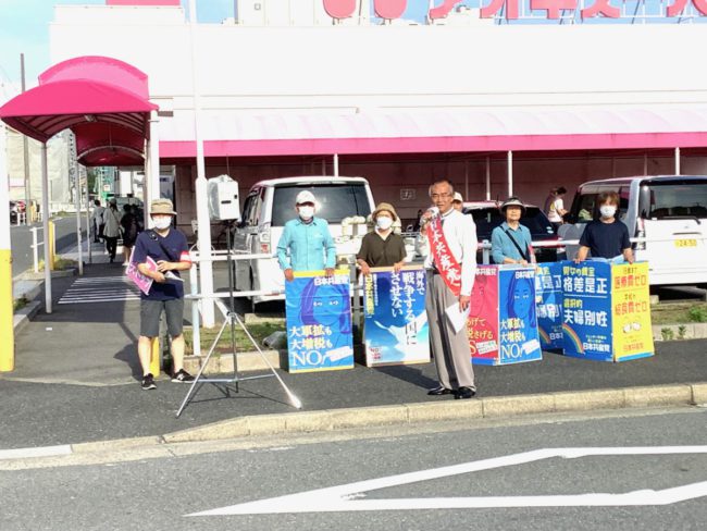 中川区内の東では五女子ビッグ前で。真ん中では野田フィール前で。西側では戸田アオキスーパー前で宣伝しました。がんばれよ、とか、選挙残念でしたとか声をいただきました。