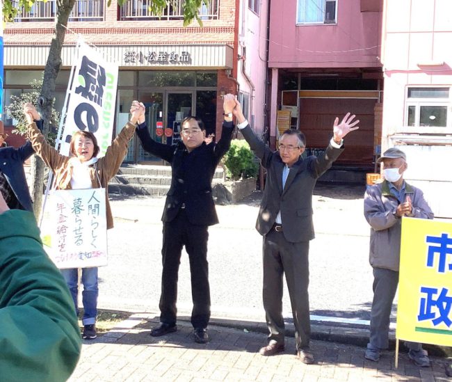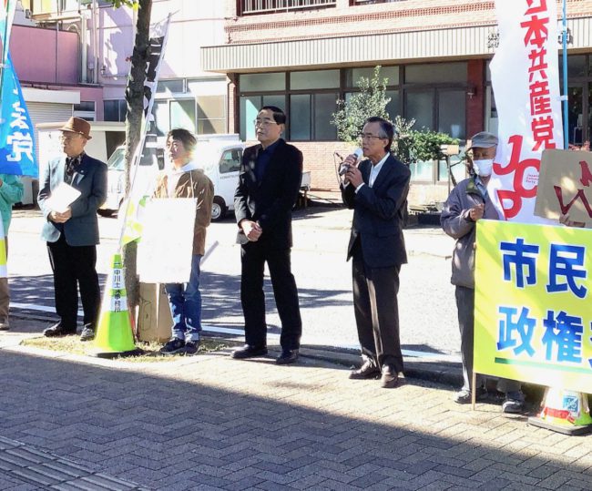 野党共闘が勝利するかどうかの徳島・高知参院選補選、長崎衆院選補選の投票日の10月22日、中川区を含む5区の会の皆さんによる野党共同街頭宣伝が行われました。参加したのは、立憲民主党、社民党、新社会党、緑の党、そして、日本共産党えがみ博之が参加しました。