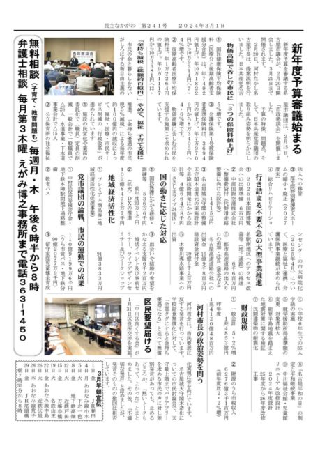 民主なかがわ2024年3月1日号を発行しました。