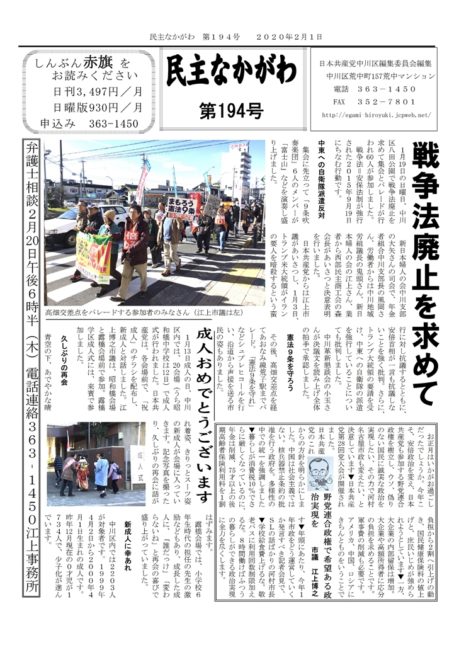 地域新聞民主なかがわ2020年2月1日号発行