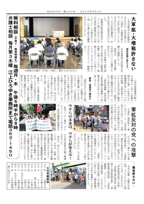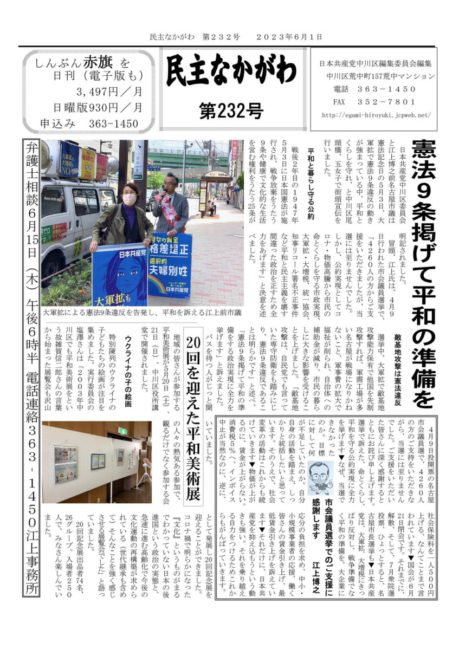 地域新聞民主なかがわ2023年7月1日号発行しました。 >>