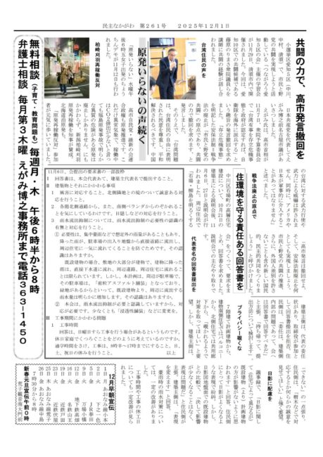地域しんぶん民主なかがわ2025年12月1日号発行しました