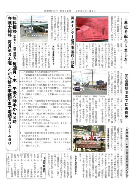 << 地域しんぶん民主なかがわ2025年12月1日号発行しました